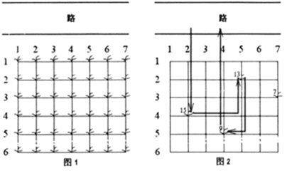 2) 从一棵植株跳到前后左右与之相邻的另一棵植株;