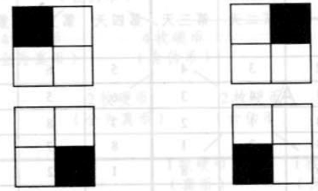 当k=1时,残缺棋盘有如下几种可能,其中残缺部分用阴影表示