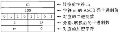 第二步:将十进制ASCII码值转换为一个字节的八位二进制ASCII,并将八位二进制ASCII码值分割成前四位与后四位两个二进制数。如 字母“m”的十进制ASCII码值109转换为二进制就是“01101101”,按四位分隔得二进制 “0110”和“1101”。