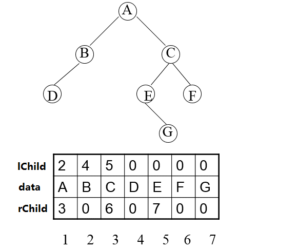 2 A 3 根节点Tree[1],节点值‘A’,左孩子是Tree[2],右孩子是Tree[3]